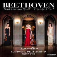 《C大调三重协奏曲》Triple Concerto in C Major Op.56 ,为钢琴、小提琴和大提琴而作,是音乐史上极为罕见的独特作品。由几种独奏乐器和管弦乐团合奏的“大协奏曲”在十九世纪初叶时即已流行,但像贝多芬这首加入钢琴的协奏曲却属首创。此首协奏曲作于1803-1804年,1807年出版,题献给他敬爱的鲁道夫大公,据说这是贝多芬为他的弟子鲁道夫大公演奏而作。为了考虑到鲁道夫大公的实际演奏技能,钢琴部份就写得简易些,小提琴和大提琴的部份,技巧就高深些,可是贝多芬仍刻意地使钢琴部份能浮现出来。在以三重奏组成的独奏部分中,并没有按照一般的习惯三种乐器各用一个声部,而是小提琴和大提琴组成了一个声部,衬托钢琴声部,也就是二重奏的结构,这样可以突出钢琴的独奏,使人产生浓厚的室内乐感。三种乐器中时常由大提琴奏出主题,再由小提琴协助,使幻想情调格外增强,音质更加丰厚。钢琴虽然只有较为简单的技巧,但保持了高贵的气质;管弦乐则具有明快的音色,以及强大的力感,把三种独奏乐器的音色,完全融化成一体。三位独奏者虽然各自对立或协调地展开,但大体上好像在愉快的气氛中进行交谈。此曲主题较单纯,而又简洁的展开,采用旧有的协奏曲形式,产生典礼仪式般的壮丽感,酝酿出友爱的气氛。虽然缺少雄大或浪漫的风格,见不到贝多芬惯有的宏伟雄姿,但我们反而可以体会贝多芬温厚的另一重性格。作品于1808年5月在维也纳首演,共由三个乐章组成: 第一乐章,快板,C大调,4/4拍。开始时由大提琴和低音提琴,轻轻地奏出主题,三种独奏乐器接替主题时,是由大提琴开始的,自此时就明显地提示出此曲的结构和发展的手法。小提琴非常优雅,是一种带装饰性的洛可可风格。贝多芬用较强的乐队合奏作过渡,而用非常轻的钢琴独奏来展现乐章的高潮。此乐章没有贝多芬特有的伟大震撼力与激烈调性的展开,但其中使用了许多极富感染力的大提琴乐句,足以弥补贝多芬缺少独立的大提琴协奏曲的缺憾。 第二乐章,广板,降A大调,3/8拍。这是间奏曲风格,编制短小的乐章,其中和“皇帝”协奏曲的慢乐章有很多相似之处。虽然很抒情,但就整个乐章而言,缺乏发展性。乐章开始时,音乐似乎是“凝视”了一会,想判断一下何去何从,很快地,在钢琴和小提琴参与下,营造出一派庄严的氛围。 第三乐章,波兰舞曲风格回旋曲,C大调,3/4拍。第二、第三乐章是不间断弹奏的。其主题具波兰舞曲节奏,钢琴重奏颇为活跃,整个乐章的演奏,显出温和但华丽的风格。结尾独奏乐器群与管弦乐以华丽的交相竟奏推向灿烂而辉煌的气氛而结束。 此首协奏曲作于贝多芬的丰收期。他的《“英雄”交响曲》、《“华德斯坦”奏鸣曲》、《“热情”奏鸣曲》,歌剧《菲岱里奥》都是在此时完成的。奇怪的是,这部优美动听的《三重协奏曲》似乎从未受评论界重视,贝多芬专家奥斯邦尼说这部作品受到了“不公正的矮化”。由于作品并未炫耀各独奏者的技巧,所以演奏效果较难提高,结果就一直被人冷落。但即使没有激烈的浪漫感情,该作兼备室内乐曲的亲密感和协奏曲的壮丽感,仍蕴藏着相当的魅力。且有史料证明,这部作品为贝多芬解决了协奏曲写作上的难点,即怎样处理“过渡性合奏”。因此可以认为此曲为他以后的小提琴协奏曲及第四、第五钢琴协奏曲铺平了道路。