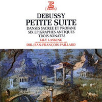 《小组曲》Petite Suite 是一部钢琴四手联弹作品,作于1889年。这部作品是在魏伦《被遗忘的短歌》Ariettes Oubliees 这首诗完成后不久创作的,这首组曲与他那些值得重视的歌曲之间有着鲜明的对照,几乎被认为是出自另一人之手。他的这一作品还曾得到海里•布赛尔(Herri Busser)的帮助为它改编成管弦乐曲,流行范围甚至超过了两首《阿拉伯风格曲》。这部作品还被誉为是底里比斯的灵感再度主宰着德彪西的天才。 1. 在船上 En Beteau ,G大调,6/8拍,小行板。精致的分解和弦的伴奏声部上方流动着一条旋律,这种二重奏的技巧与福雷的《洋娃娃组曲》中的第一首《摇篮曲》相近似,但福雷的这一作品早在前几年即已完成。中间乐段结尾处有一段不长的经过句,预示着两种方法:第一是全音音阶的用法;第二是由十六分音符组成的小音型由第二钢琴担任,这与他后来惯用于象征水中的波纹、漩涡以及急流式的手法十分相似。 2. 行列 Cortege ,E大调,4/4拍,中板。曲中有着优美的摇摆节奏,甚至以少许钢管乐的吹奏架势不时予以渲染,有些地方则运用声部的重叠增加气氛,一些转调也处理得很出色,特别是表现在中间乐段的结尾处。 3. 小步舞曲 Menuet ,G大调,3/4拍,中板。可以看作是这部作品的精华所在。指法优美、轻快,声部安排得十分紧凑,内声部尤为显著。全曲精致、完整,在德彪西这一时期的钢琴音乐中是很罕见的。此曲一开始以精灵般的笛音与号声作为暗示,乐曲运用力度从P减弱到PPPP的手法,使具有魔术般的变幻消失在结束处,仙境般的号角召唤回声,微弱地围绕着主导旋律,多少暗示着度德彪西钢琴音乐在他奇异的幻梦世界里已经寻找到了归宿。 4. 芭蕾舞曲 Ballet ,D大调,2/4拍,优雅地。作品中不带夸张手法,令人回想起他的《幻想风格舞曲》。中段是圆舞曲,不管怎样,还是属于风靡全世界的法国舞剧音乐范畴。